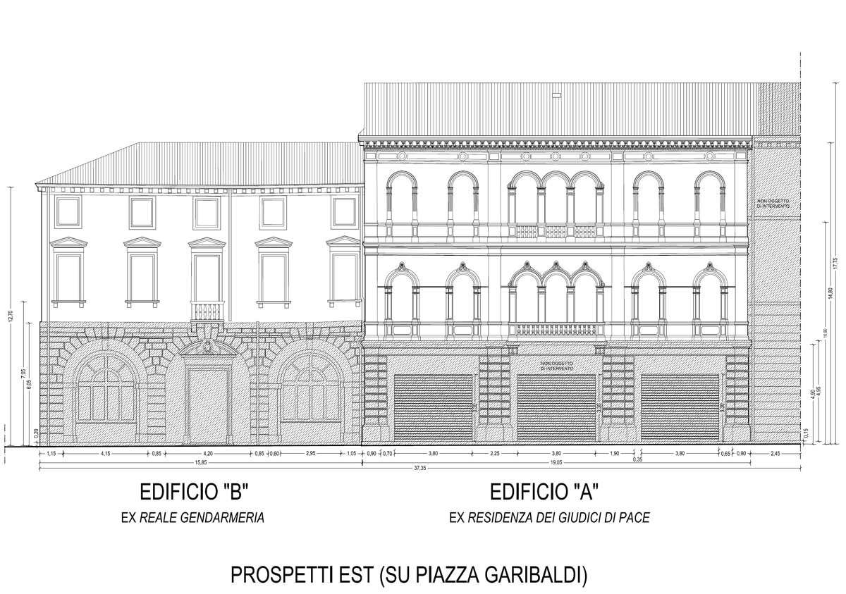 Il “Palazzo del Popolo” è un complesso di edifici di impianto rinascimentale, più volte rimaneggiati fino alle ultime profonde ristrutturazioni di tardo Ottocento e primo Novecento. L’intervento di restauro ha riguardato in particolare i due corpi di fabbrica meridionali, già denominati Residenza del Giudice di Pace e Reale Gendarmeria. Oltre al restauro delle facciate, è stata operata una revisione del distributivo al fine di predisporlo per un successivo intervento di finitura, in vista dell’accoglimento di uffici. Si è inteso liberare l’edificio dalle alterazioni che oscuravano l’assetto planimetrico tripartito, per rendere nuovamente leggibile quest’ultimo anche attraverso caute riproposizioni di partizioni e riaperture di fori tamponati.