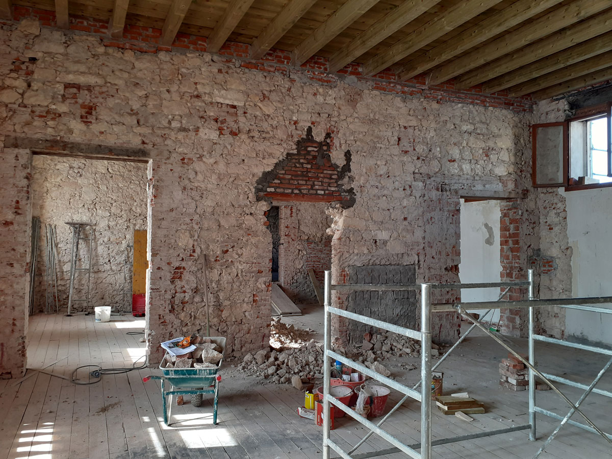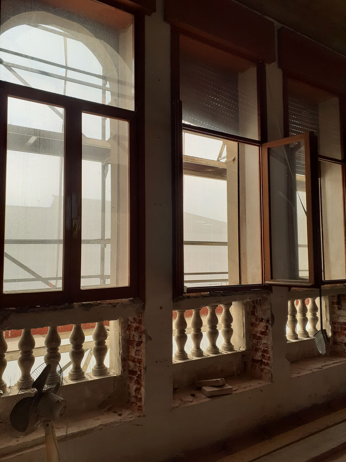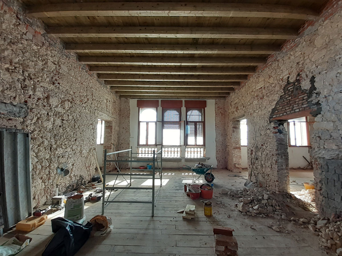 Particolare significato ha assunto, in tal senso, la riacquisizione della spazialità del portego passante ai piani superiori della Residenza del Giudice di Pace. Per le strutture, si è predisposto il consolidamento dei solai con la posa di un doppio tavolato e delle murature con rabberciamenti, cuciture e, in alcuni casi di particolare dissesto, formazione di intonaci armati. Anche le coperture sono state oggetto di riparazione e consolidamento sismico. L’incarico ha compreso anche il coordinamento della sicurezza in fase di progettazione e la direzione operativa delle opere edilizie.